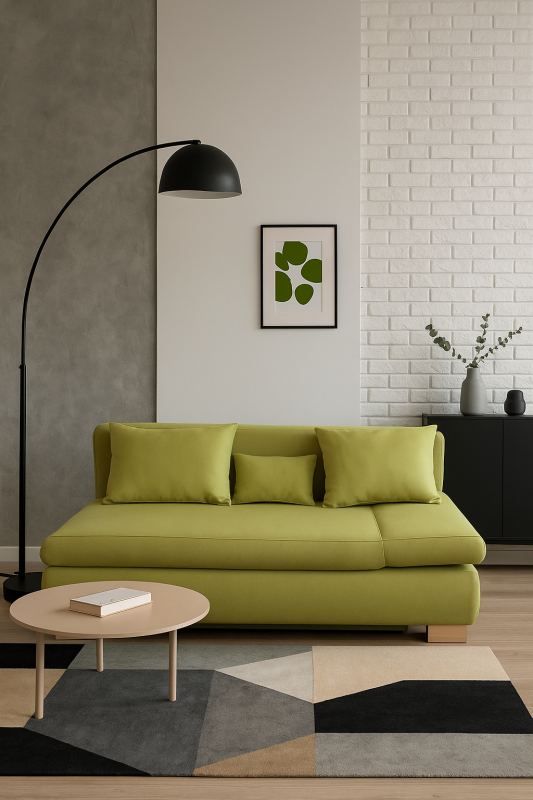 Rozkládcí pohovka s úložným prostorem a polohovatelným podhlavníkem. Je vybavena lamelovým roštem a pružinovým jádrem. Díky tomu snese náročné používání, doporučejeme na každodenní spaní. Polohovatelný podhlavníky. Cena včetně 4 Ks polštářů a dopravy.