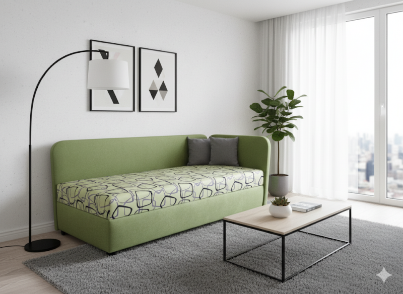 Základní cena je v provedení sendvičová matrace + pevný rošt. Vyobrazené polštářky nejsou součástí ceny, lze je doobjednat.